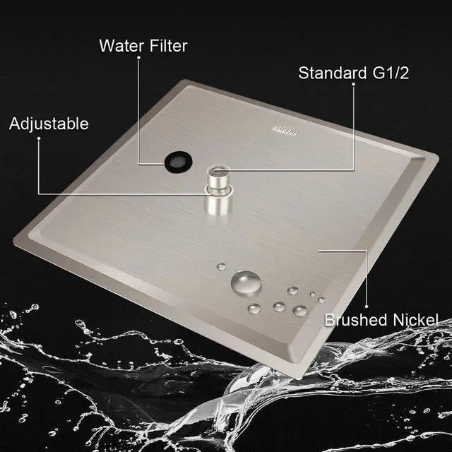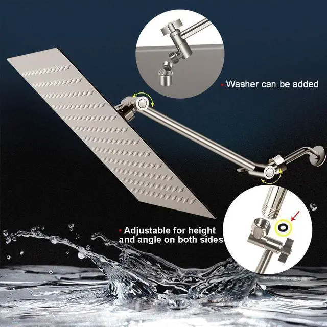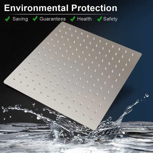 RAIN SHOWER HEAD: 12' ' Large Stainless Steel Square Rainfall Showerhead. Waterfall Full Body Coverage, Stainless Steel Construction, Corrosion Resistant and Highly Durable. LUXURY SHOWER DESIGN, it must be a beautiful decoration for your bathroom