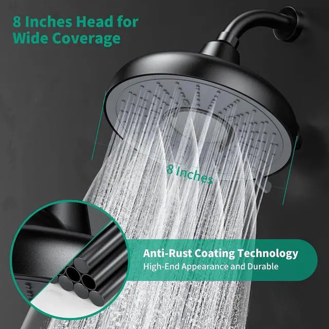8-Inch Filtered Showerhead: Enjoy an enhanced shower experience with F8 8-inch filtered shower head, designed to improve water quality and flow