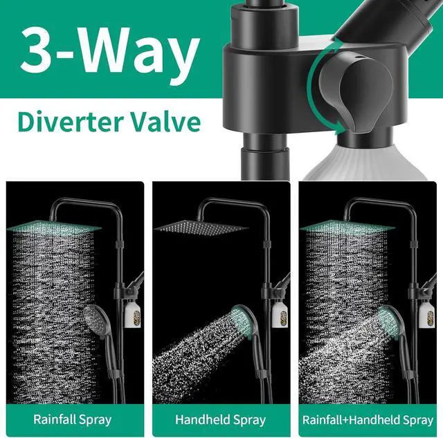 Effective Filtration SystemOur large shower heads with handheld spray combo includes a shower filter that softens hard water. This shower filter contains a mixture of KDF-55, calcium sulphite, vitamin C and more to effectively remove chlorine, heavy metals and other harmful substances from water. The modern waterfall shower head with handheld combo allows you to enjoy cleaner shower water while bathing, and cares for your sensitive skin!
