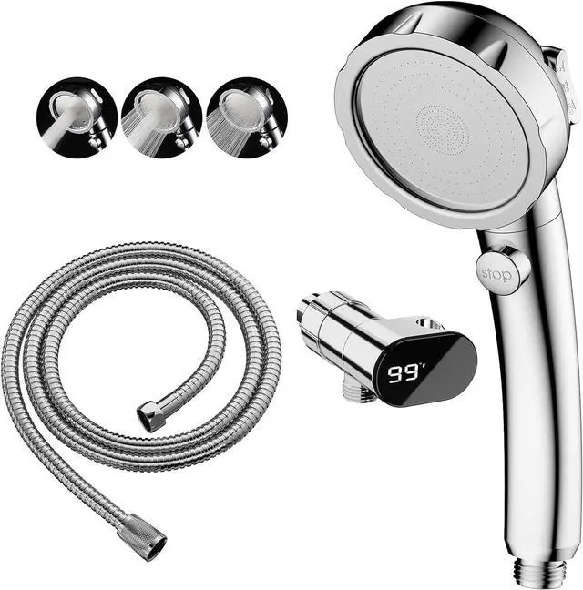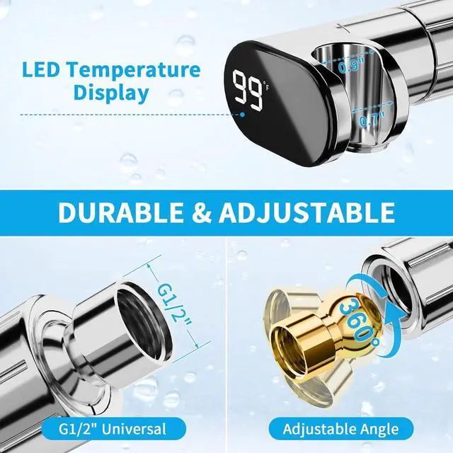 Shower Thermometer: With the LED temperature display in the shower head bracket, you can easily adjust and maintain your desired water temperature for a comfortable showering experience. Ideal for families with young children, RV shower head with hose provides real-time monitoring to avert accidental scalding while bathing.