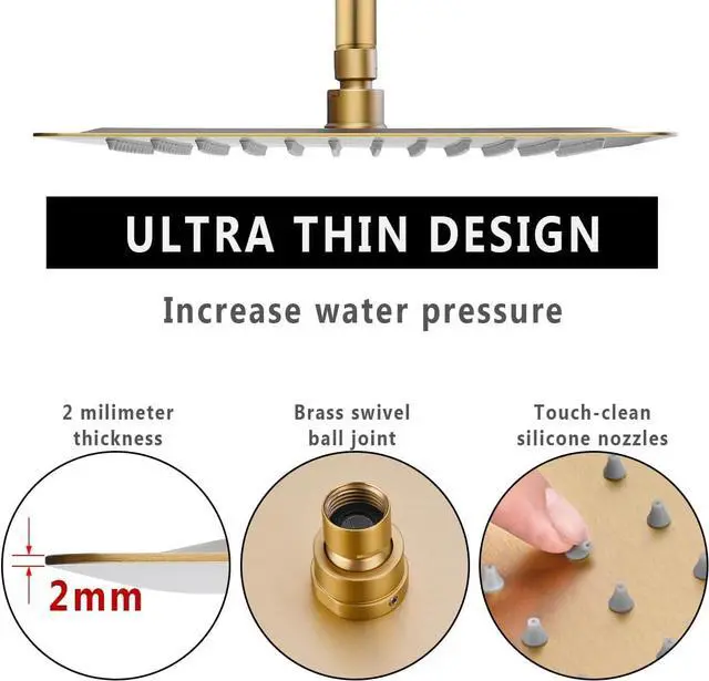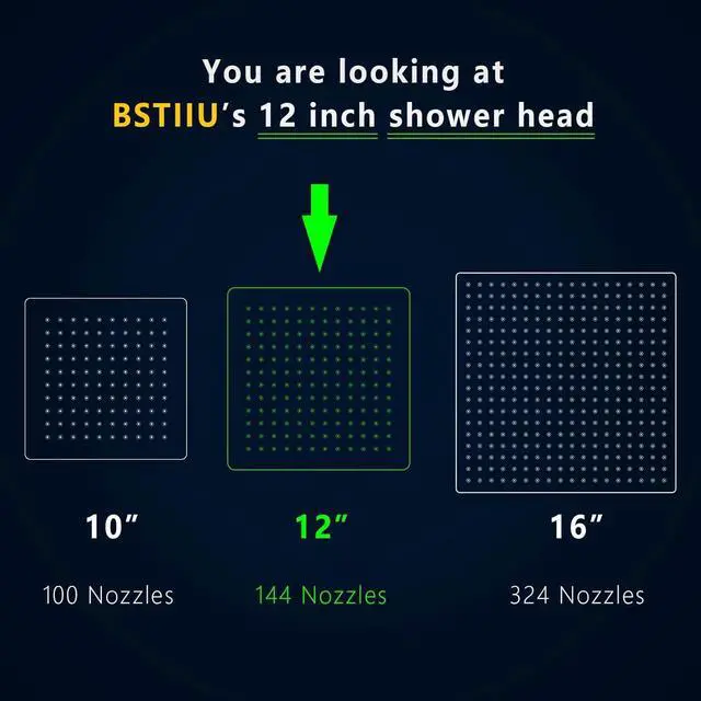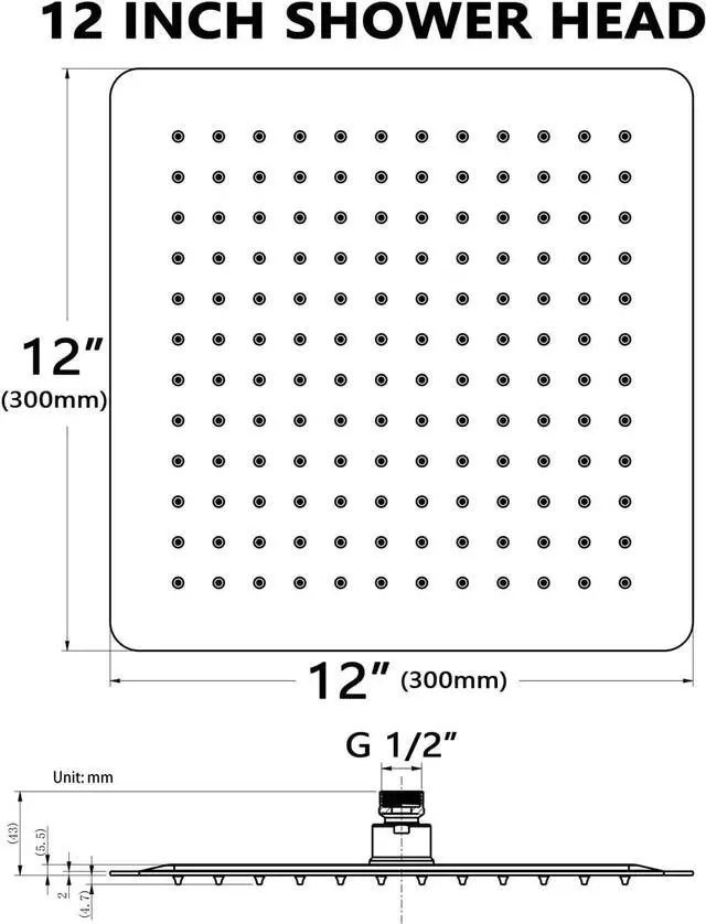 HEAVY DUTY MATERIAL: 12" rain shower head is made of high quality solid 304 stainless steel, extra large showerhead to give you a very comfortable shower experience, anti-corrosion and anti-oxidation performance & will not leak