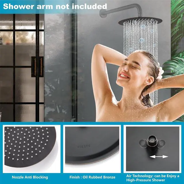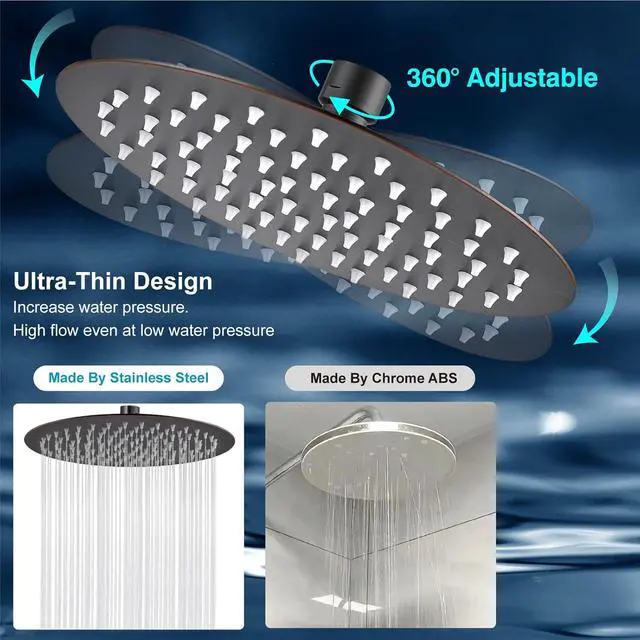 Powerful Water FlowThe water flow of this bronze rain shower head can full cover your body. The thickness is only 0.08 inch ultra-thin.