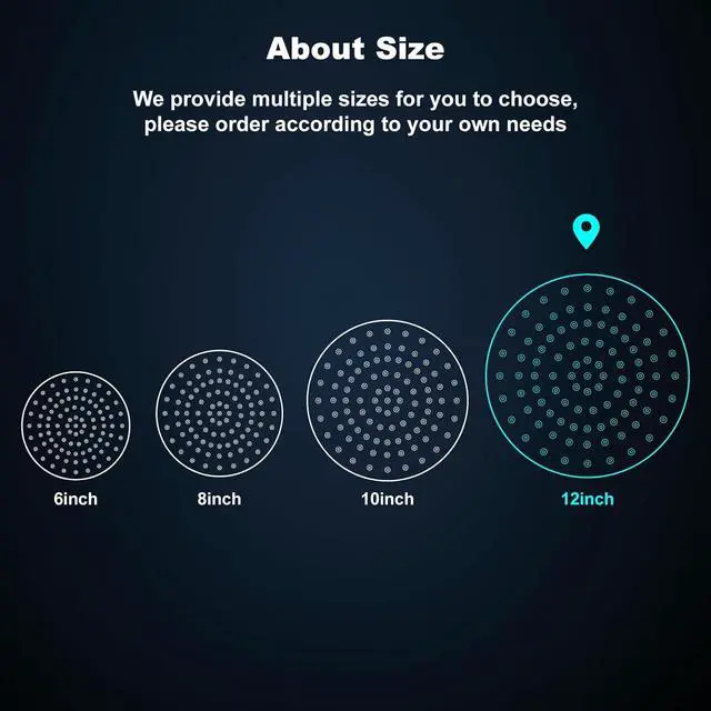 Large Shower Head12 inch round rainfall shower head made from stainless steel to ensure durability. Large shower head which can cover the whole body, luxury shower head design creates a modern look for decorating your bathroom.