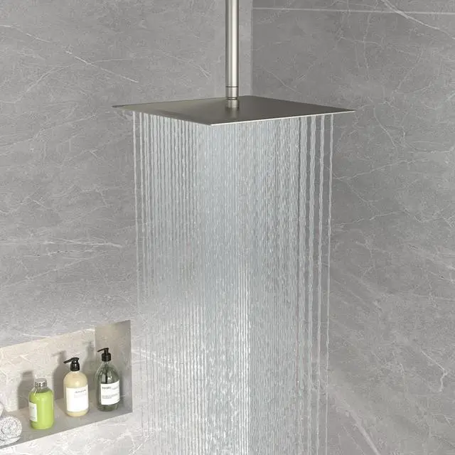 RAIN SHOWER HEAD: 16 Inch Large Stainless Steel Square Rainfall Showerhead. Waterfall Full Body Coverage, Stainless Steel Construction, Corrosion Resistant and Highly Durable. LUXURY SHOWER DESIGN, it must be a beautiful decoration for your bathroom.