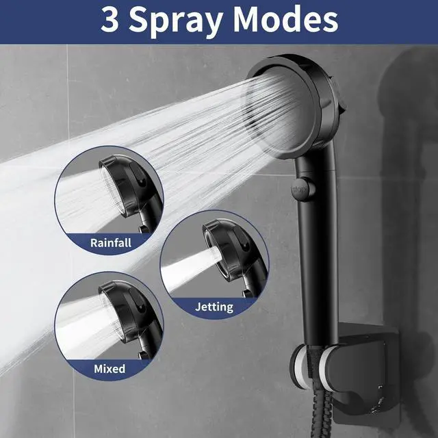MULTI-MODE SHOWERHEADThe camper shower head has 3 practical spray modes for you to choose from, including rain, mixed and jet spray. And the RV shower head with filter can be used as a spray gun by unscrewing the head of the shower. The spot spray mode instantly eliminates stubborn build-up in your bathroom, cleaning bathtubs, tiles, pets and more. A multi-mode shower head set will improve the quality of your daily shower and give you a luxurious bathing experience.