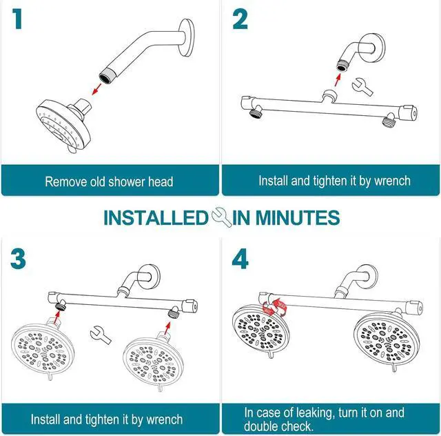 Easy DIY Project: Our package includes everything you need to get started: 2 rain shower heads, a dual shower head adapter, washers, Teflon tape, and a user instruction manual. With our easy-to-follow instructions, you can install everything yourself in just a few minutes - no need to call a plumber!