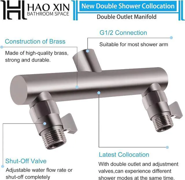 New Design: Can hold 2 showerheads bringing the different shower experience, Double enjoyment.