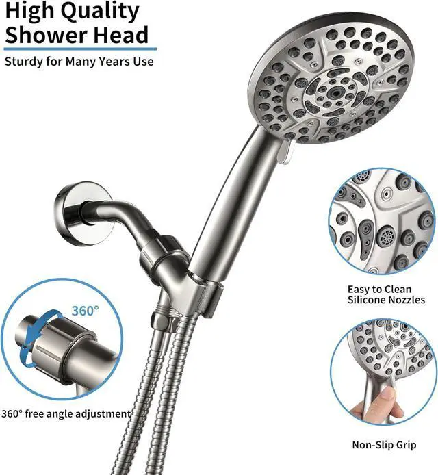 High Pressure Shower Head with HandheldThe self - flushing silicone nozzles automatically remove hard water deposits, meaning no more clogged shower heads. You can easily detach the 6 - foot stainless - steel hose to clean the shower glass, bathtub corners