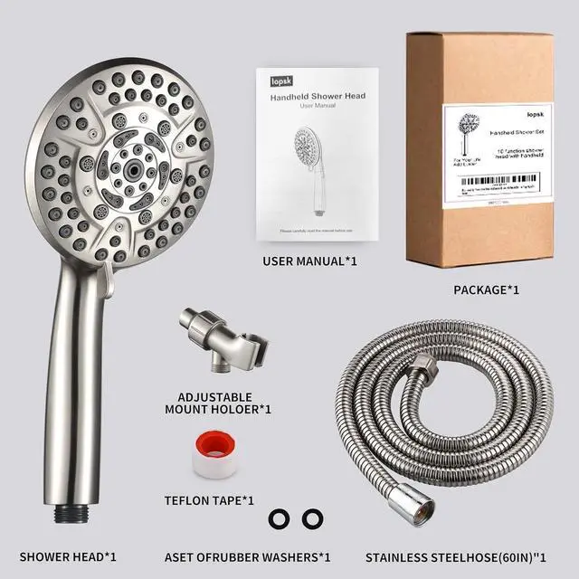 5-Min Tool-Free InstallUniversal 1/2" connector fits all shower arms. Complete kit includes 60" stainless steel hose, Teflon tape, and adjustable rust-proof brass bracket. No plumbing skills needed.
