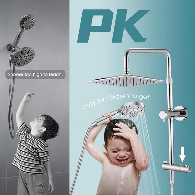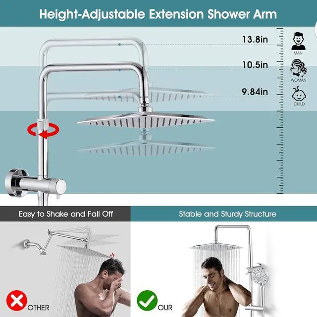 Premium Material: This showerhead kit features a height-adjustable shower head extension arm. Crafted from durable stainless steel and brass materials, it offers unparalleled stability and eliminates the risk of collapse or shaking that commonly occurs with other extension arms
