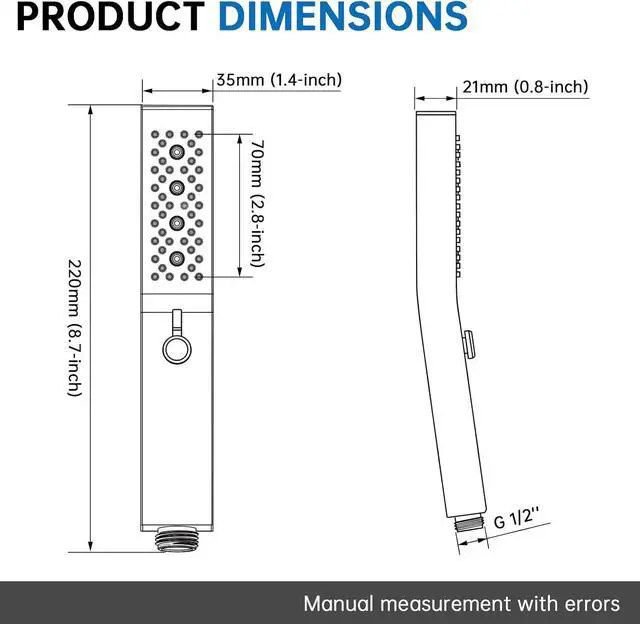 POLISHED WORKMANSHIP: Polished chrome color, exquisite luxury and beautiful design. Square handheld can be used with square rainfall shower to make your bathroom look more stylish.
