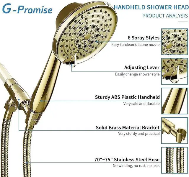 PACKAGE INCLUDES: Sturdy ABS PlasticHandheld Showerhead, Solid Brass Construction, 70" ~75" Shower Hose, Teflon Tape, Wrench, Crochet and Spare Washers