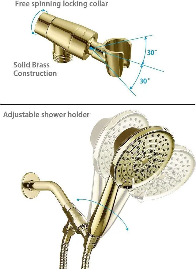 SOLID BRASS BRACKET HOLDER: It' s more sturdy and durable, You will never worry about cracking. No water flow through the ball joint. This is a unique design! It can support as much as possible the weight and keep the shower head steady, say good-bye to the falling