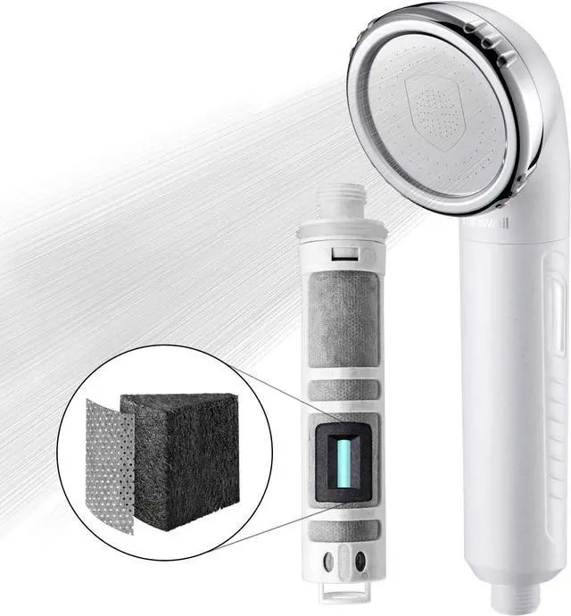 FILTRATION MEDIA - The internal filter composes of the composite activated carbon fiber, the absorption rate of carbon fiber is 5times of the traditional carbon, which enables the filter to remove 99% of chlorine. The harmful chemicals are absorbed onto the medium' s surface, thus being effectively removed from the water supply.