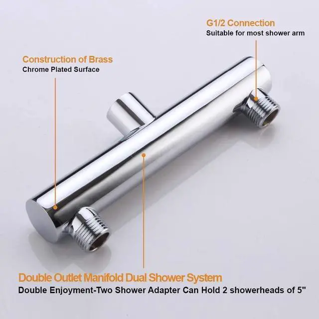 Double enjoymentThe double outlet shower manifold can hold 2 shower heads or hand showerbringing the different shower experience, can be installed anywhere on the bathroom, kitchen or balcony. Our dual outlet manifold can also be installed on the bidet sprayer for pet cleaning.