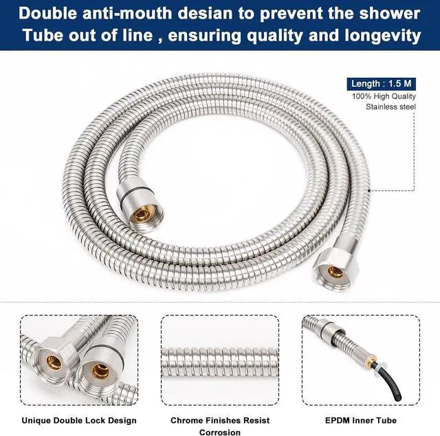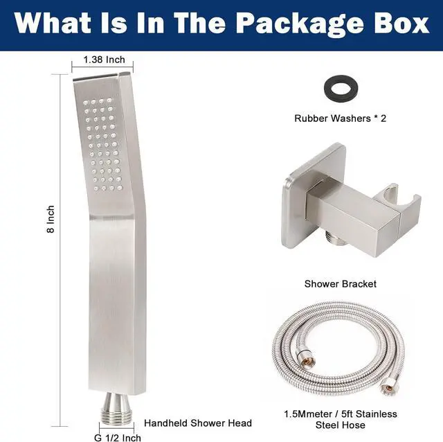 5FT STAINLESS STEEL HOSE: Offer superior flexible and longer reach hose than other hand showers. It is also ideal for Bathing Kids, Washing Pets and Cleaning applications. 1/2 connector fits with any universal shower arm. Solid metal Hose Nuts, filter and washer insure reliable leak-proof connection.