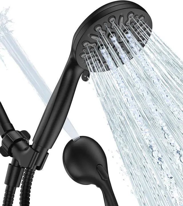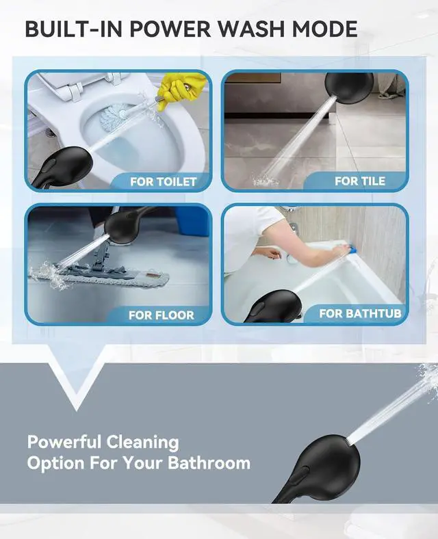 High Pressure & 9 SettingsJDO High Pressure Shower Head offers 9 spray settings, including rain, massage, mist, spray, mixed modes, powerful jet mode, and water-saving mode for pausing water during shampooing, soaping up, or shaving. With the latest upgraded air-induction technology, this hand held shower head infuses water with air, providing a powerful and luxurious shower experience, even in low water pressure conditions. Built-in Power Wash ModeWith just a simple press of the back button on the hand shower head, it transforms into a powerful spray mode! The 71" extra-long shower hose provides ample reach, allowing you to effortlessly rinse off foam, hair, and dirt in your bathroom.