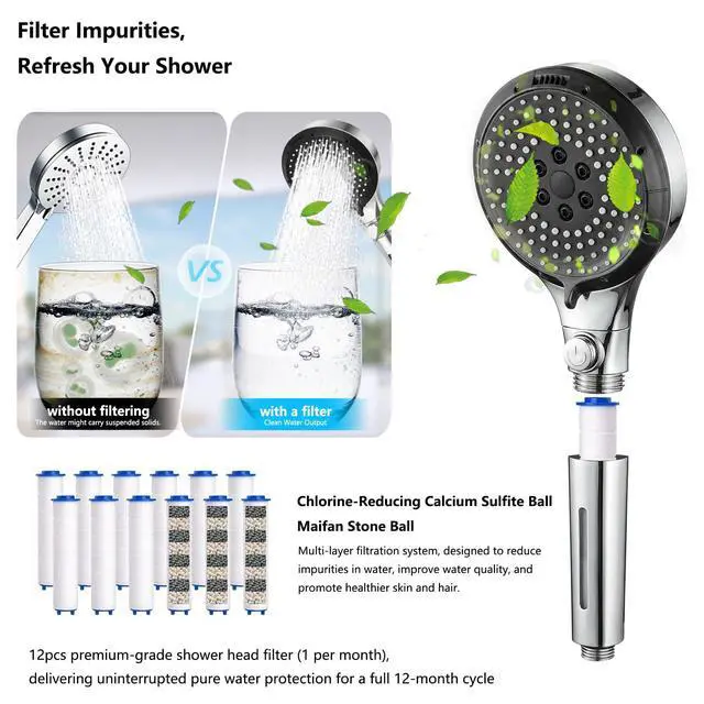 12pcs premium-grade shower head filter (1 per month), delivering uninterrupted pure water protection for a full 12-month cycle