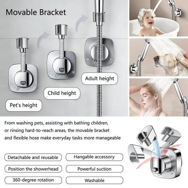Adjustable height as needed, easily installed and removed in seconds. Features a suction cup and adhesive backing for a more secure fit.