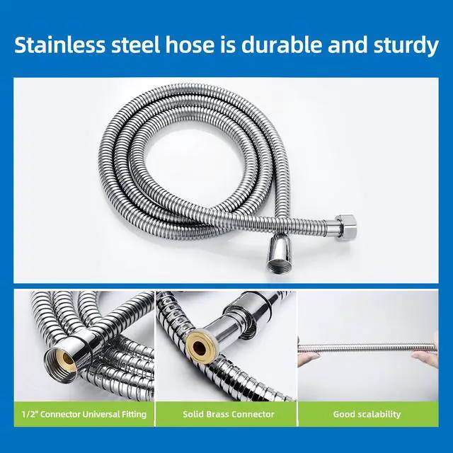 Easy Installation: The equipped stainless steel hose and bracket are of standard size and do not require installation tools, making it easy to replace old showerheads