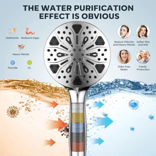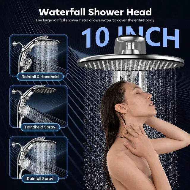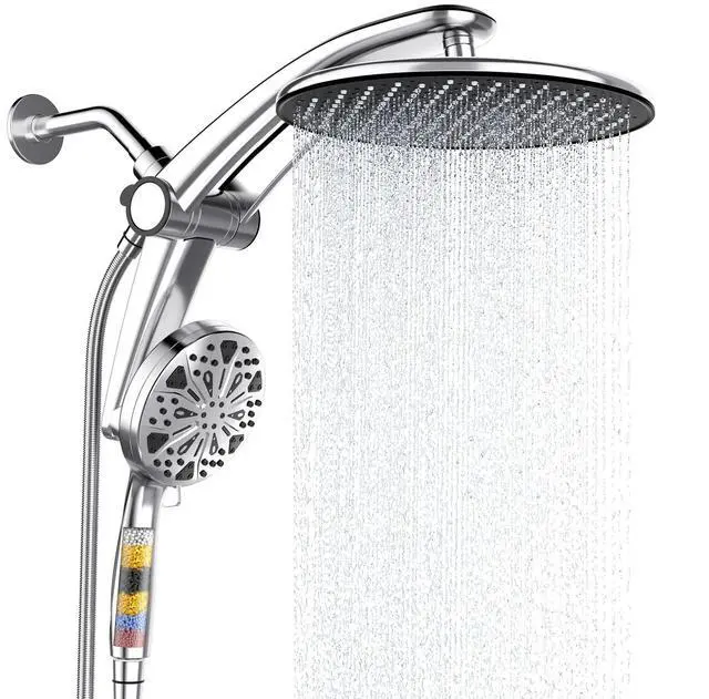 Shower Head with filtered Handheld High Pressure daul Shower Heads with Handheld Spray Combo and 10 Sprays Handheld Shower Head Detachable Shower head Built-in Magnetic Docking and Power Jets Chrome