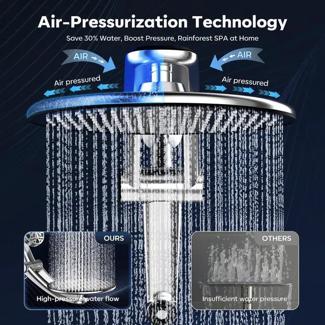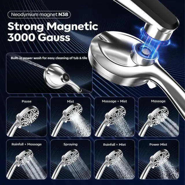 Patent-inspired Magnetic Dual Shower Head with Detachable Sprayer: Experience the ultimate convenience of a 2-in-1 shower system, combining a fixed rainfall shower with a detachable high-pressure handheld sprayer. The built-in magnetic docking offers secure attachment and easy release, allowing you to effortlessly switch between an overhead rain shower and targeted cleaning or massage.