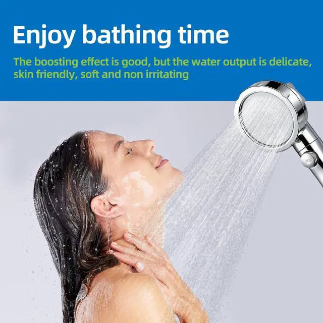 High Pressure Shower Head: The showerhead uses special pressurization technology to provide strong and stable water output. After the water enters the nozzle base, it is accelerated by a three wing accelerator to increase the water flow speed and momentum, resulting in stronger water output. By restricting the water channel, the water flow is delicate, soft, and smooth