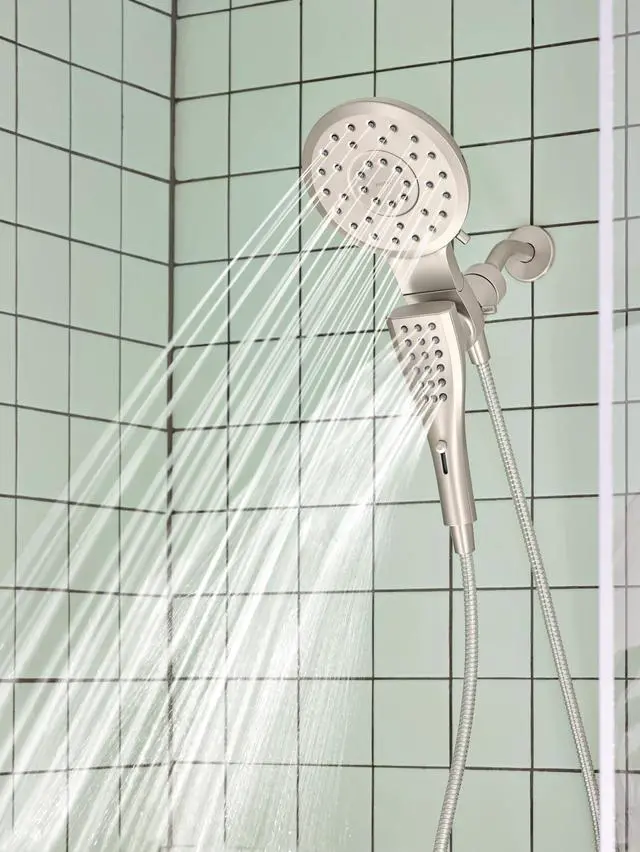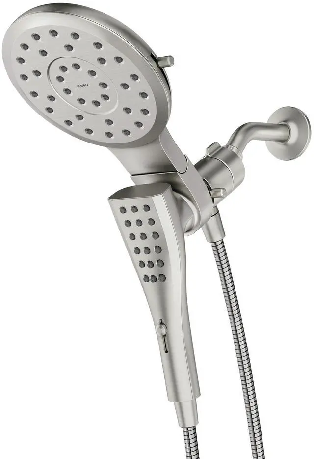 The Verso Combination Shower featuring Infiniti dial offers both a rainshower and handshower in one sleek design while providing a customized shower experience. The new Infiniti dial featured on both showerheads provides unlimited spray and coverage options so you can find the perfect shower to meet your needs. Simply slide the dial to seamlessly switch between spray modes with no pause in experience. The rainshower showerhead also can pivot for more shower spray angle options. The Combination Shower provides a 3-in-1 design. It is easy to install, as the shower head easily screws on to the existing shower arm in your bath. The rainshower and handshower can each run separately or together for a customized experience. For added convenience, the handshower includes Moens Magnetix technology that includes a powerful magnetic dock for easy release of the handshower and a secure snap back into place even when eyes are closed. It is backed by Moens limited lifetime warranty for your long term peace of mind.