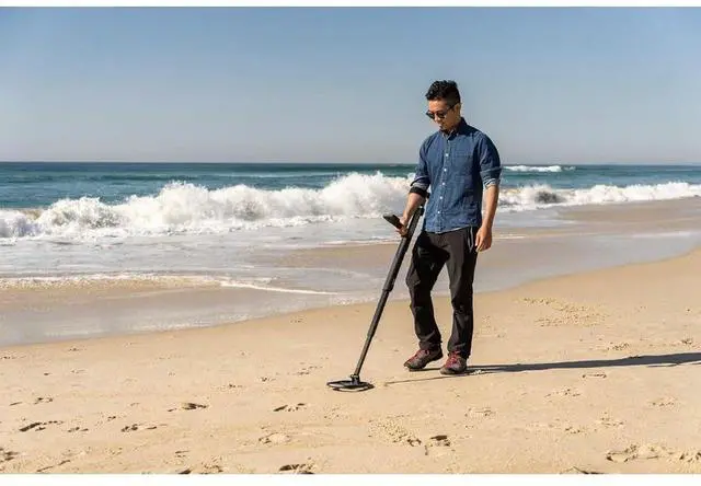The Minelab GO-FIND 44 metal detector is lightweight and collapsible. The search coil is fully waterproof, so you can find treasure on land and in water.