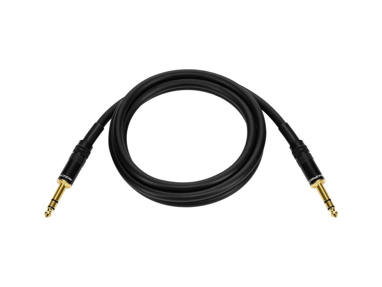 Monoprice Premier Series 1/4 Inch (TRS) Male to Male Cable Cord - 6 Feet- Black 16AWG (Gold Plated)