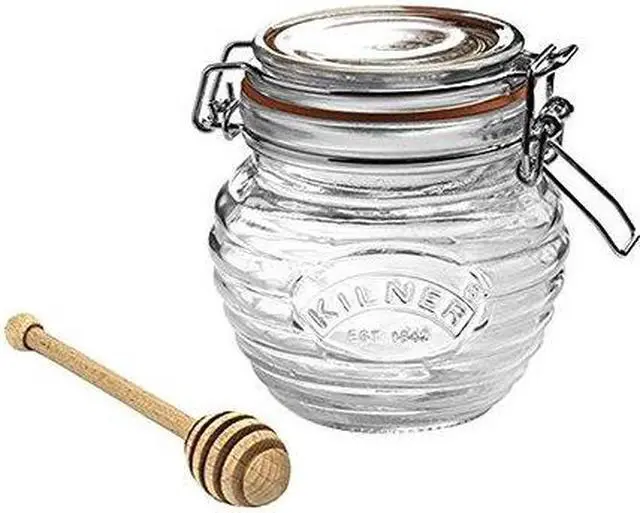 "The perfect honey storage solution or gift for the kitchen, pantry and home Durable and practical, the Kilner Glass Honey Pot Set is ideal for storing and serving honey, maple syrup, molasses and canning or pickling fruit and vegetables. A beautiful glass design embossed with the iconic 'Kilner' logo adds a sophisticated element to any cabinet, countertop or shelf. Versatile in nature, the jar comes with a grooved beechwood dipper for simple drip-free retrieval of honey and features a stainless steel clip top and airtight seal to preserve and keep contents fresh for longer. Measures 5"" high x 6"" wide x 4-1/4"" deep with a capacity of 13-1/2-fluid ounces. Glass jar (without seal) is dishwasher safe for easy cleaning. Remove rubber seal from jar prior to putting in dishwasher and hand wash only. Imported. The Kilner business was first established by John Kilner in the 1840's in England. Initially producing glass bottles and jars, it was towards the end of the 19th century when the original Kilner Jar was first invented. The original Kilner jar is as much-loved and successful now as it was 120 years ago. Its long-lasting popularity is owed to its distinctive pressure seal and iconic design. Put simply, households all over the world trust it to successfully preserve and pickle their fruit and vegetables. Now, not only is the Kilner jar an essential for the kitchen but has become a statement of style around the home and office."