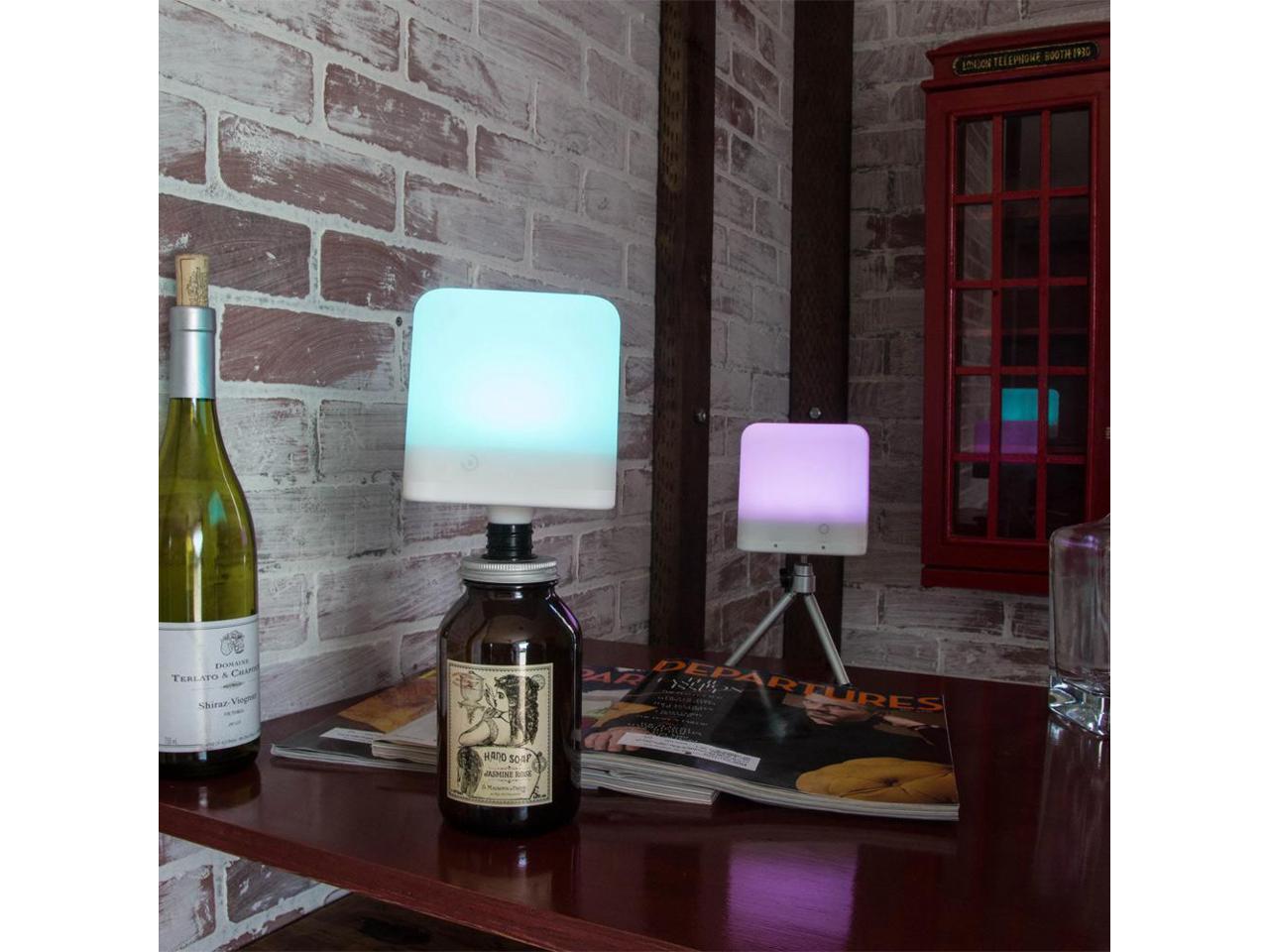 Attach MoodX to the included tripod, any tripod with a standard connector, or screw onto the provided cork and attach MoodX to a bottle of your choice as a stand
