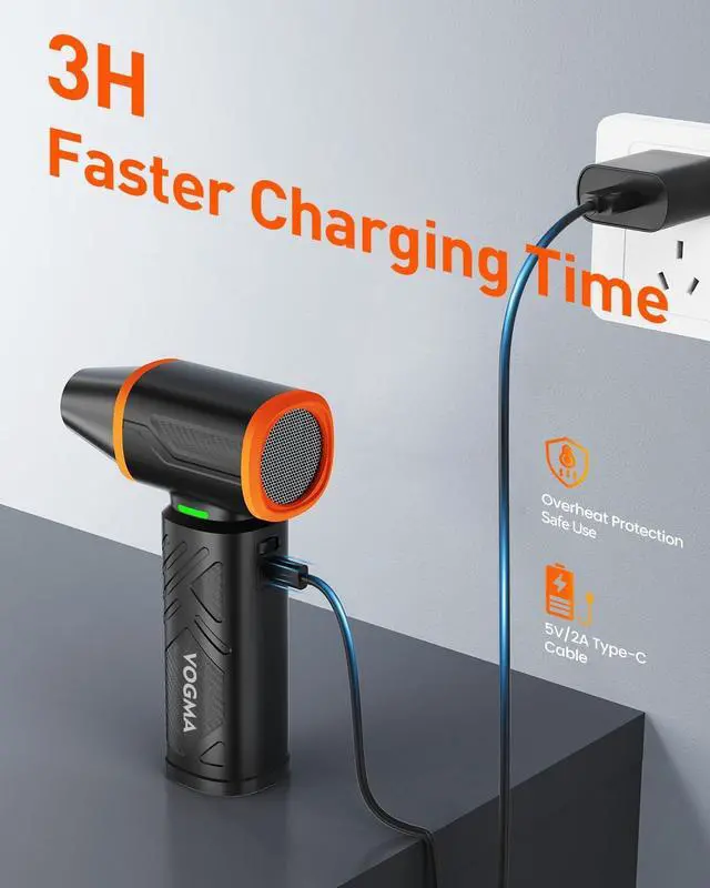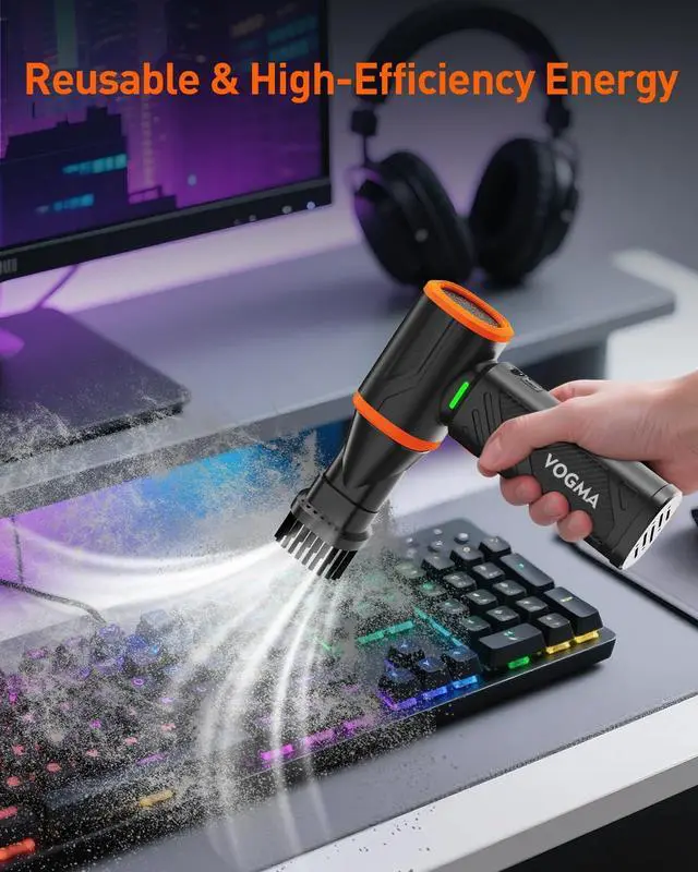 Portable Design and Reusable: The VOGMA cordless air duster is made of sturdy and durable material with long battery life and can be reused more than 500 times. Weighing only 0.5lb, comfortable to hold, lightweight and