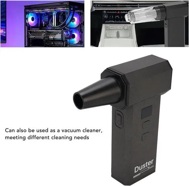 Rechargeable and Cordless dom: yourself from cords and disposable cans with this cordless air duster. Equipped with a large-capacity lithium battery, it offers up to 30 minutes of cleaning per charge and recharges via USB-C. for on-the-go maintenance or home use.