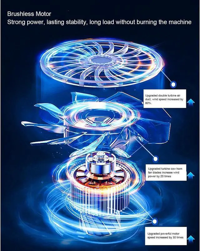 Powerful Blowing Force: The blowing force can reach about 1400 grams, equipped with high-speed 64mm brushless motor and 11-blade fan assembly, providing strong wind, suitable for industrial use.
