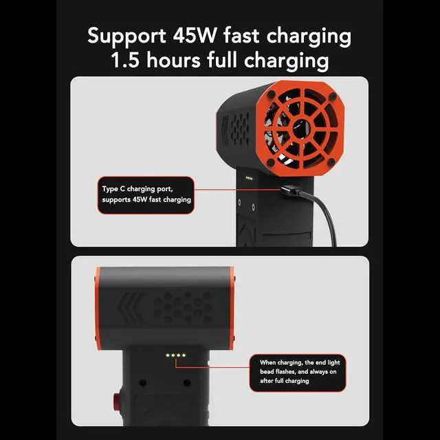 [Precise Blowing Force] Capable of generating a blowing force of 1400g at a mere 10cm distance, this blower fan effortlessly tackles stubborn grime, debris, and water, making cleaning tasks easier.
