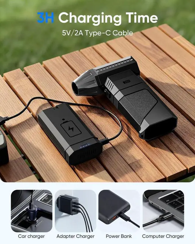 USB-C Fast Charging 80% in 30 Minutes Fully charged in just 2.5 hours via universal USB-C cable. No special chargers, no downtime. 10W smart charging saves you time, while the dual removable battery saves you hundreds per year compared to disposable can air duster spray and compressed air duster cans.