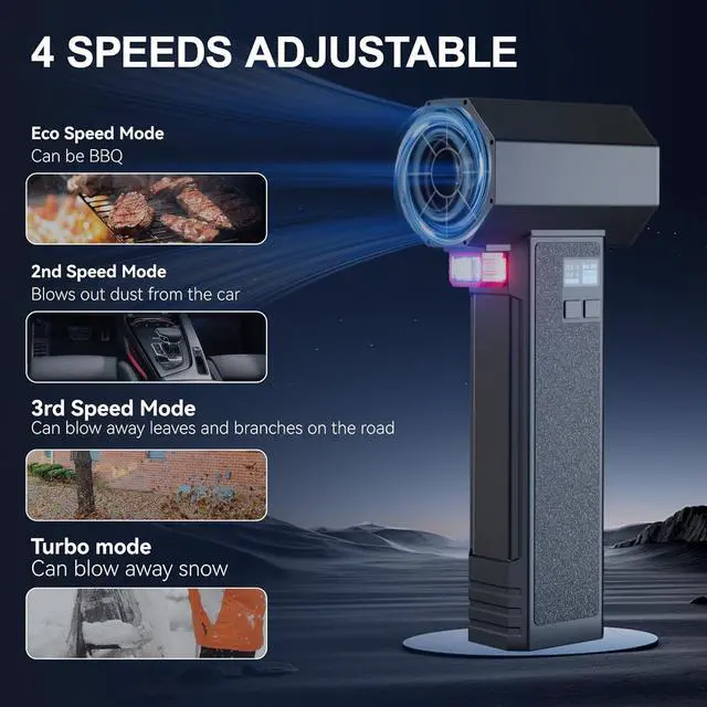 When using "Turbo Mode" for the first time, press and hold to disable the 30-second auto shut-off function. Keep in mind that the motor will heat up quickly in Turbo Mode, and after 10 seconds, overheat protection will kick in, causing the motor to stop until it cools down. Since the turbo fan generates strong suction at high speed, make sure to keep the exhaust port clear of any foreign objects to prevent damage.