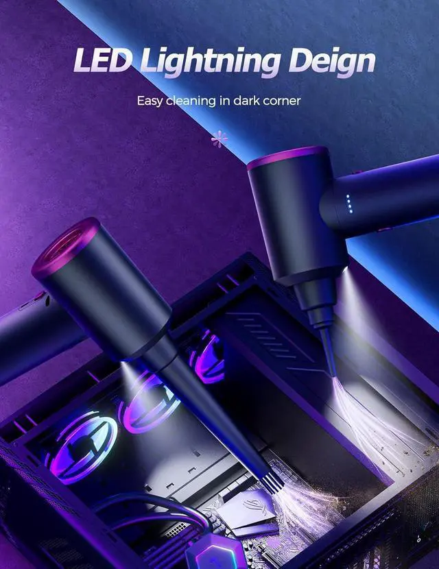 LED Lighting - The air duster is designed with an LED light, which will automatically light up when you turn on the electric air duster. It allows you to easily clean the dark corners and brings great convenience to your cleaning work.