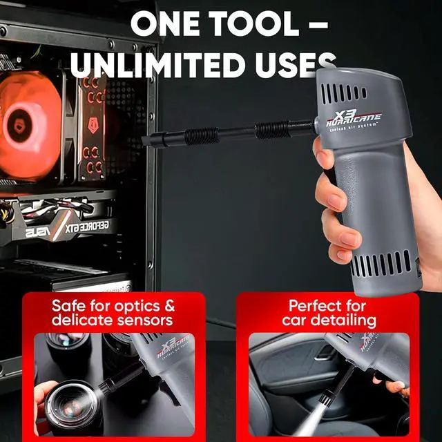 HANDHELD, LIGHTWEIGHT, COMPACT & BUILT FOR MOBILITY! Engineered for comfort and control - this cordless turbo air duster is lightweight enough for one-handed use, even during long cleaning sessions. Perfect for desk setups, car interiors, barbershops, and travel toolkits. BUILT TO LAST 5 YEAR WARRANTY Engineered in the USA with a brushless motor, rugged design, and super power turbo fan performance. Out performs compressed air dusters and refillable air cans.