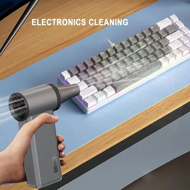 High-Power Brushless Motor & 180K RPM Speed Equipped with 180K RPM brushless motor, this cordless electric air duster delivers a powerful 82 m/s airflow for superior dust removal. It outperforms with 4 adjustable speeds (Gentle to Turbo), giving you precise control for cleaning keyboards, PC components, cameras, electronics, car, woodworking, and hard-to-reach areas. The cordless, lightweight design ensures easy, versatile cleaning anywhereno cords, no hassle.