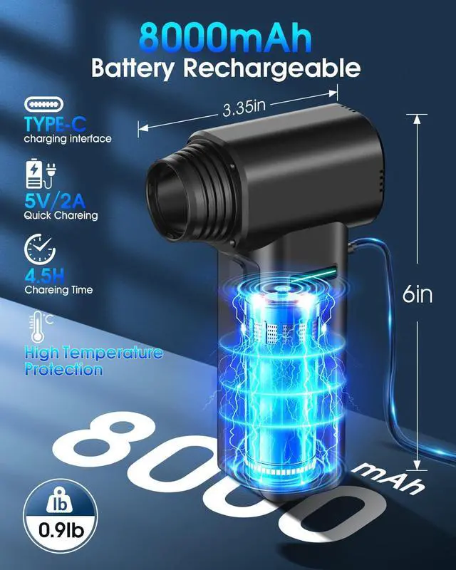 Unrivaled airflow with 300000RPM /Industrial-grade 500g wind pressure This is not your grandmas duster. The hurricane compressed air duster airflow is no joke.