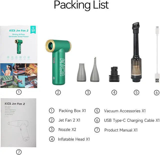 Environmental: Compared with disposable compressed gas duster, Kica JetFan 2 electronic duster blower can be recharged and reused, and the gas is colorless, non-toxic, liquid-free, and chemical-free