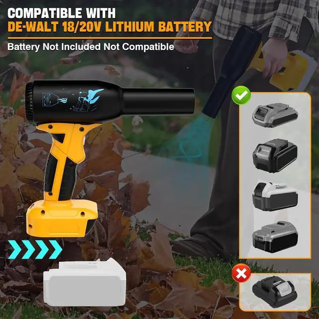 Compatible with Dewalt 20V BatteryElectric Jet Dry Blower is suitable for Dewalt 20V 18V 60V lithium battery DCB 180 DCB181 DCB200 DCB201 DCB203 DCB204 DCB205 DCB206 DCB207 DCB181-XJ DCB181 DCB180 N123283 N123282 DCB201-2 DCB606-2 DCB609-2 DCB606 etc.air duster fits in your power tool battery,easy to carry and used indoors and outdoors. Mini blower Light weight and more comfortable user experience.