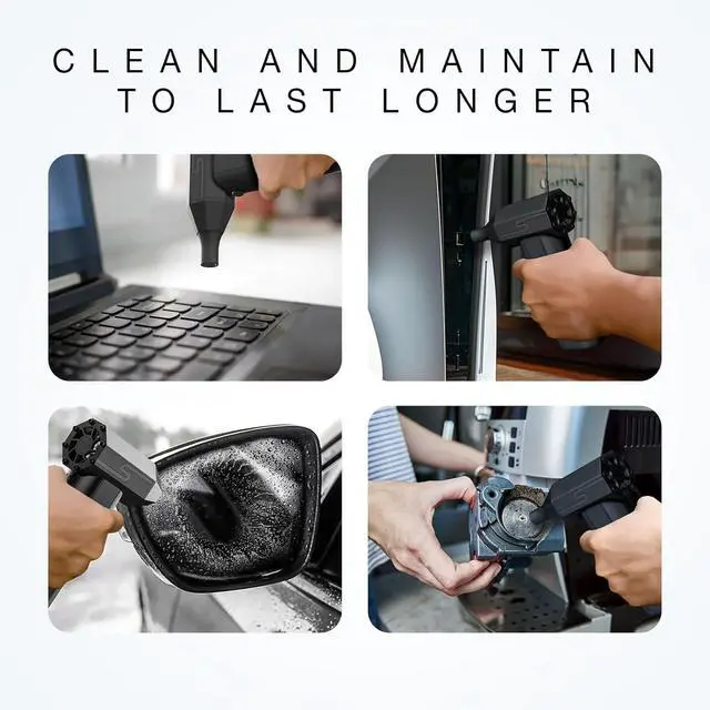 110,000 RPM High-Power Air Blower The ultra-powerful motor delivers high-speed airflow to effectively blast away dust, debris, and dirt from keyboards, electronics, car interiors, and hard-to-reach places.