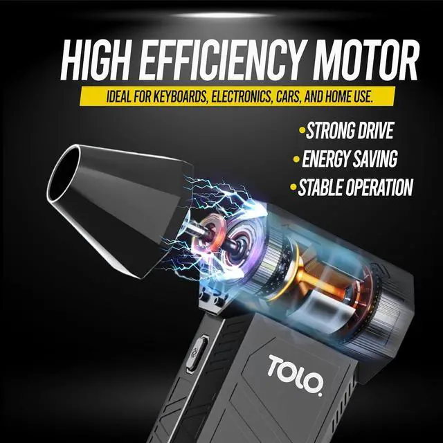 3 Speed Compressed Air Duster This compressed air duster adopts the latest upgraded brushless motor with powerful wind power, three speeds adjustable, maximum air speed of 180,000RPM, maximum blowing force of 150G, providing a strong airflow that can easily help you to clean debris and dust in all kinds of crevices