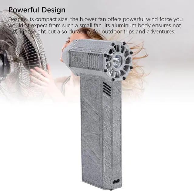 Powerful Design: Despite its compact size, the blower fan offers powerful wind force you wouldn't expect from such a small fan. Its aluminum body ensures not just lightweight but also durability for outdoor trips and adventures.