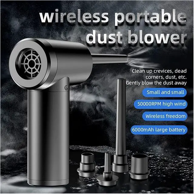 CORDLESS AIR DUSTER: This electric cordless air duster is designed to clean hard-to-reach places. It's easy to use and lightweight, designed to be carried on the go.