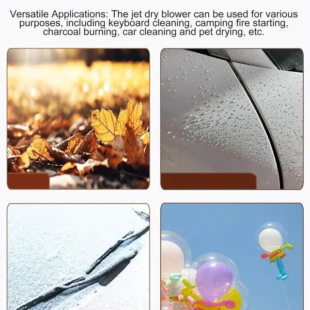 [Multi-purpose Usage] The dry blower can be used for various tasks including keyboard cleaning, camping fire starting, car cleaning, and pet drying.