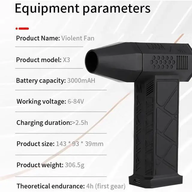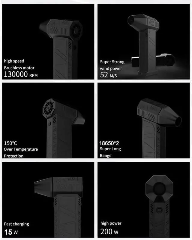 Brushless Motor & Strong Wind: Adopting a low-noise and high-speed brushless motor, the maximum output speed is up to 130,000 RPM and can provide strong blowing power. Strong wind design, one button on/off, simple and convenient operation, with perfect dust removal effect. Wind speed up to 52M/S, motor power up to 200W.
